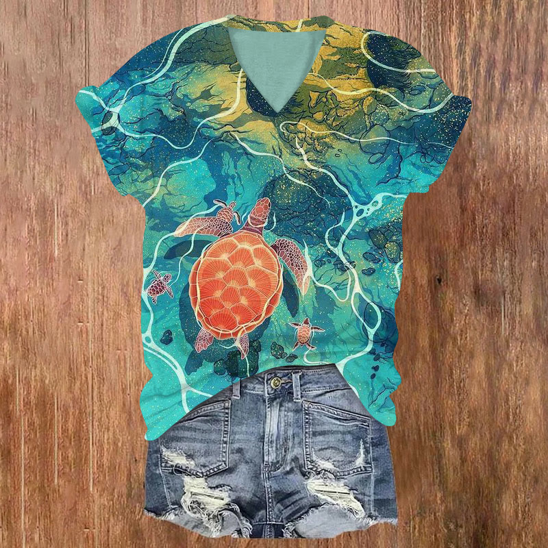 100% Cotton Starry Spotted Eagle Rays Print V-neck T-shirt