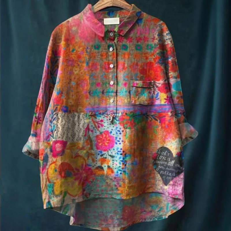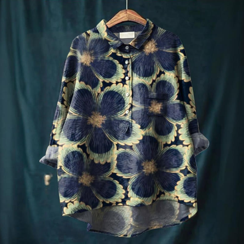 Women's Vintage Flower Art Print Casual Cotton Shirt