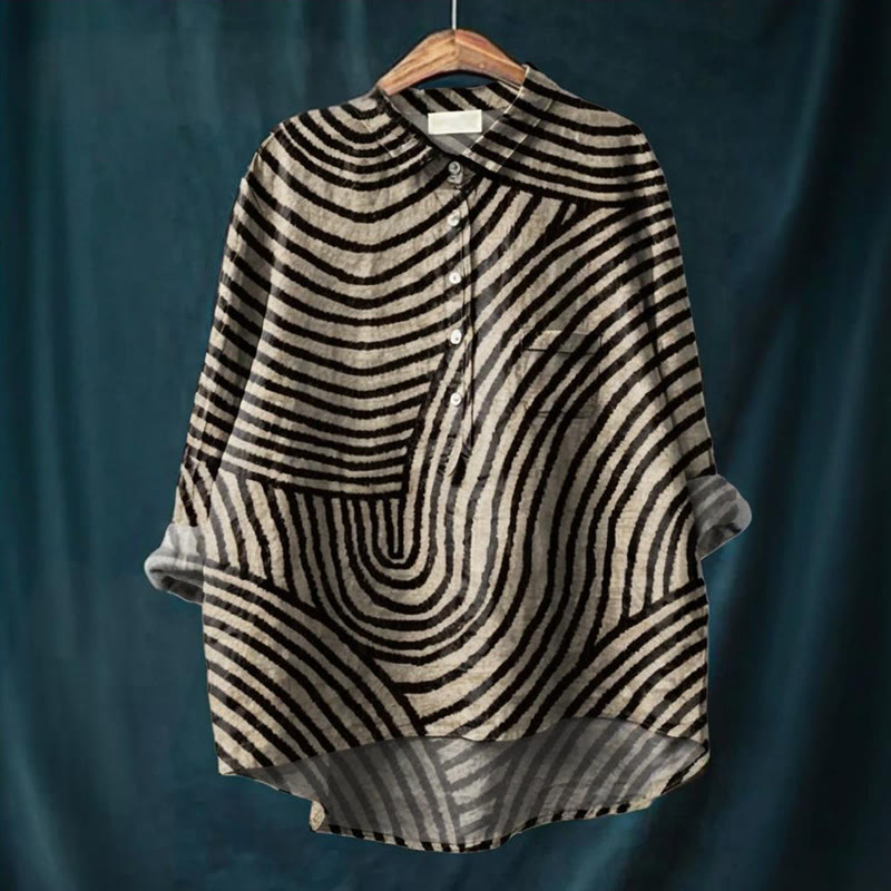 Women's Circular Line Pattern Print Casual Cotton And Linen Shirt