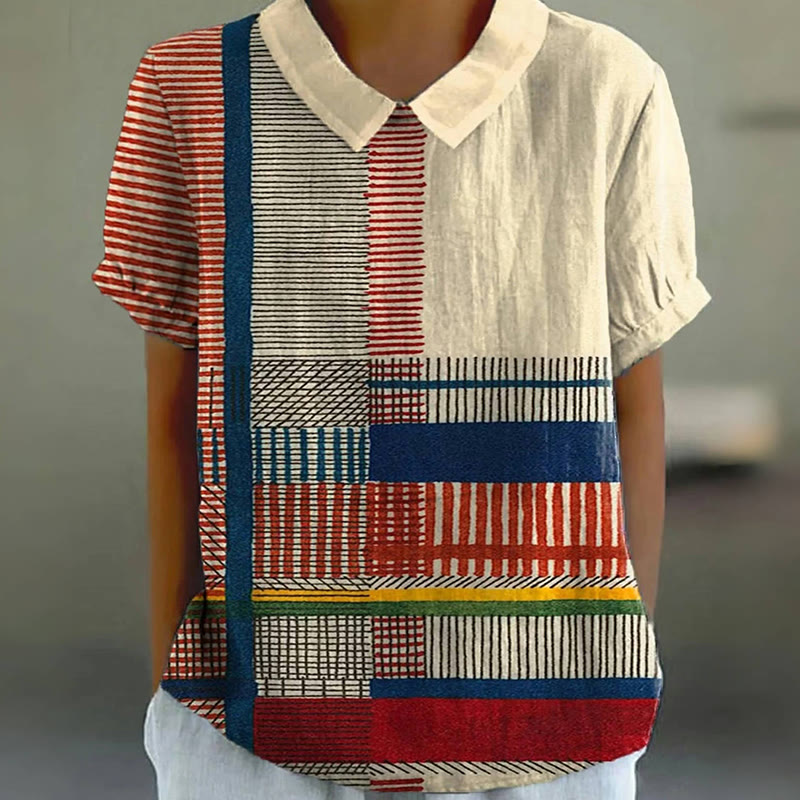 Women's Abstract Geometric Pattern Art Print Casual Cotton And Linen Shirt