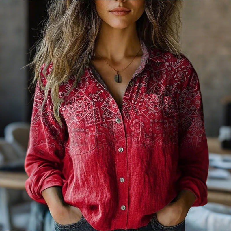 Retro Ethnic Gradient Print Long Sleeves Shirt