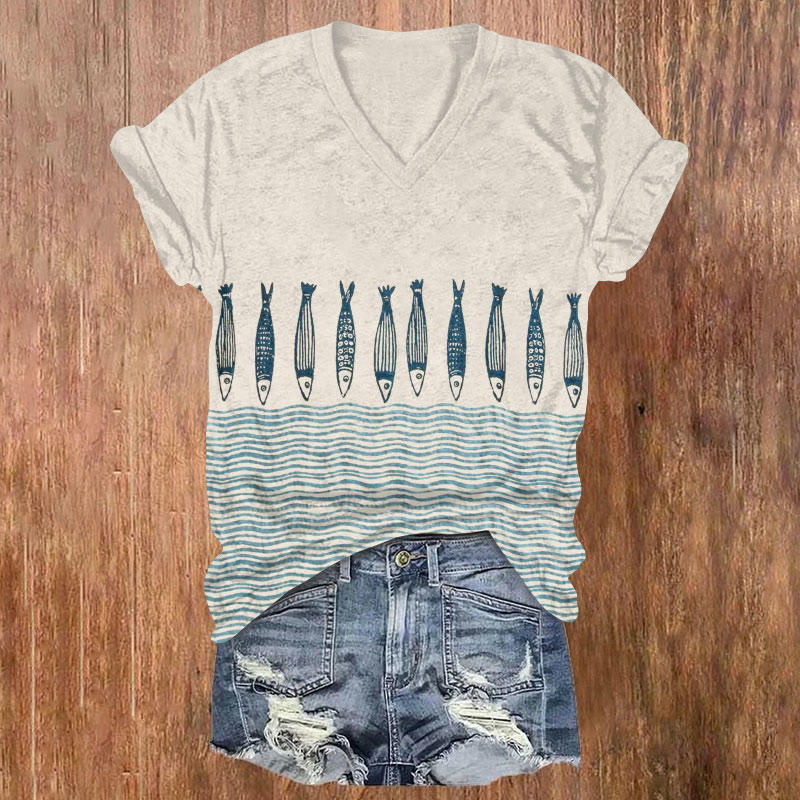 Women's Vintage Fish Art Print Short-sleeved Midi Dress