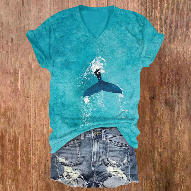 Ocean Whale Tail Print T-shirt