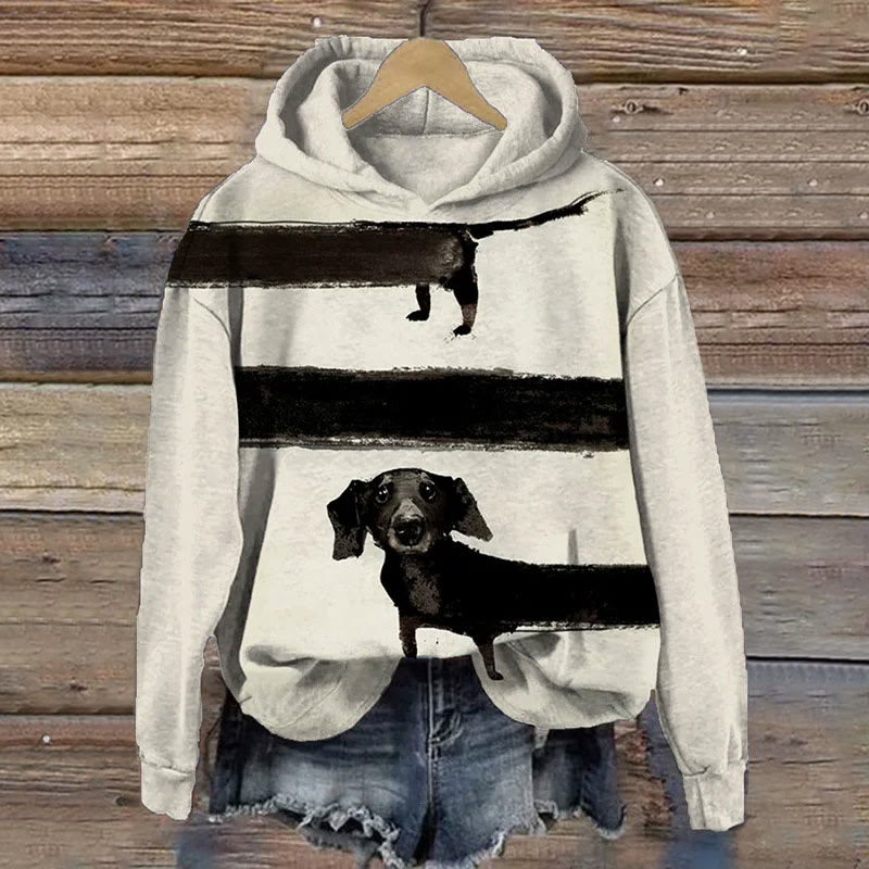 Women's Colorblock Long Black Dachshund Graphic Printed Hoodie