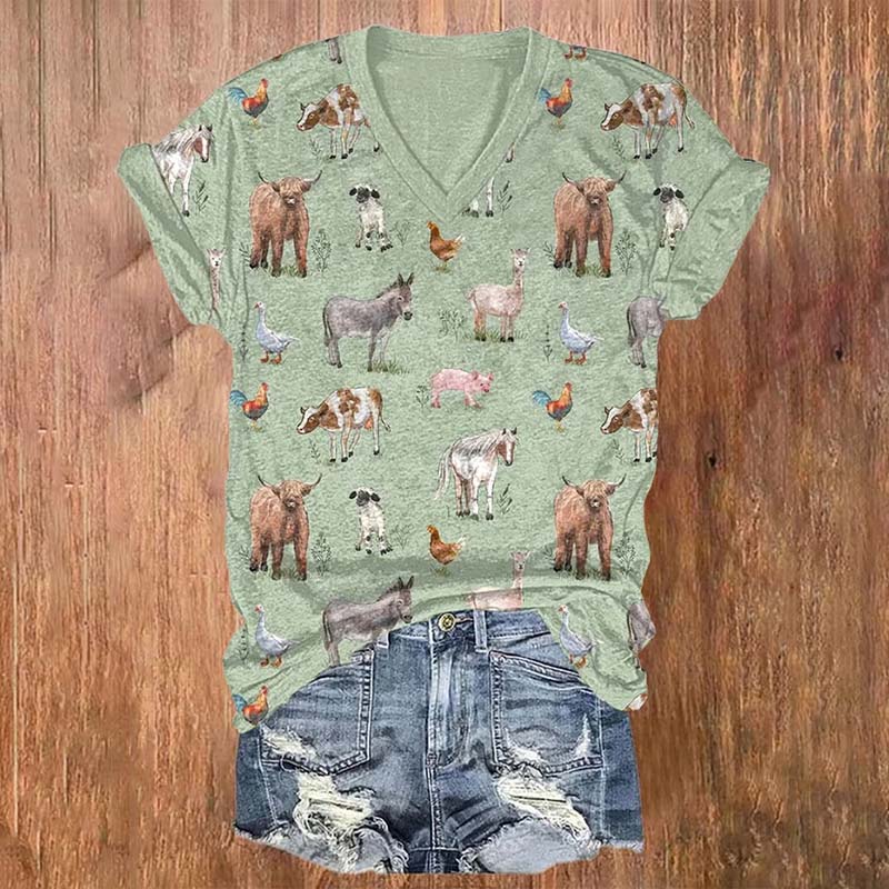 Women's Farm Animals Print T-shirt