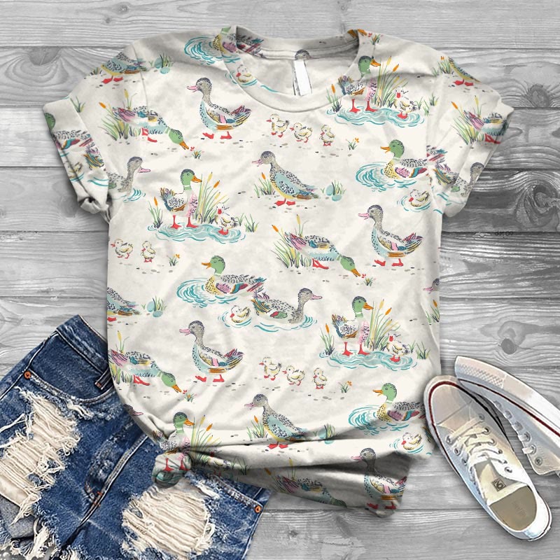 Casual Retro Cute Wild Duck Print Short Sleeve T-shirt