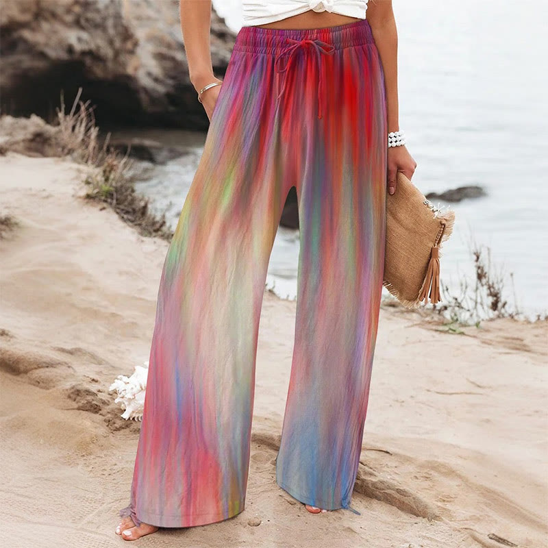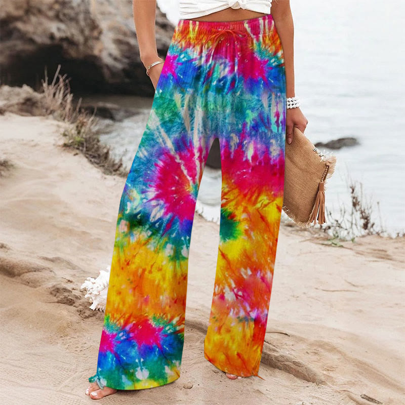 Rainbow Tie Dye Printed Wide-leg Casual Pants