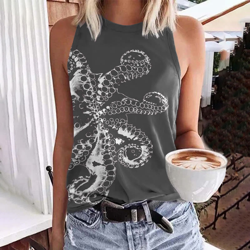 Japanese Art Octopus And Crab Print Art Loose Casual Jumpsuit