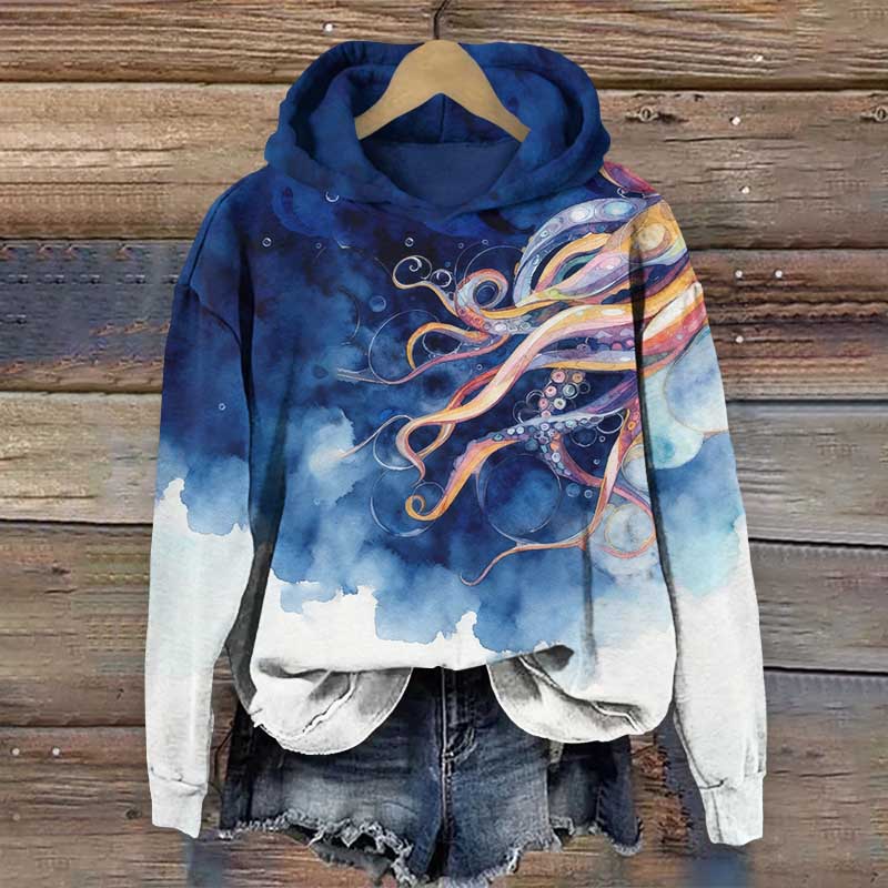 Creative Unique Jellyfish Pattern Art Print Long Sleeve Hoodie