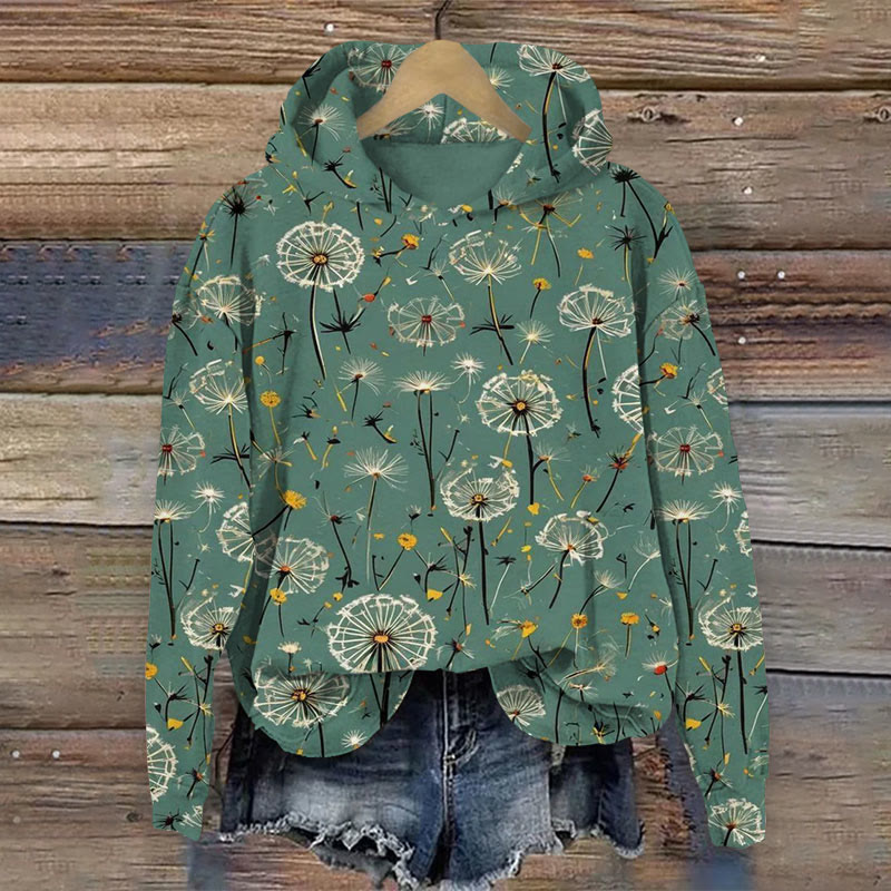 Vintage Dandelion Floral Art Print Long Sleeve Hoodie