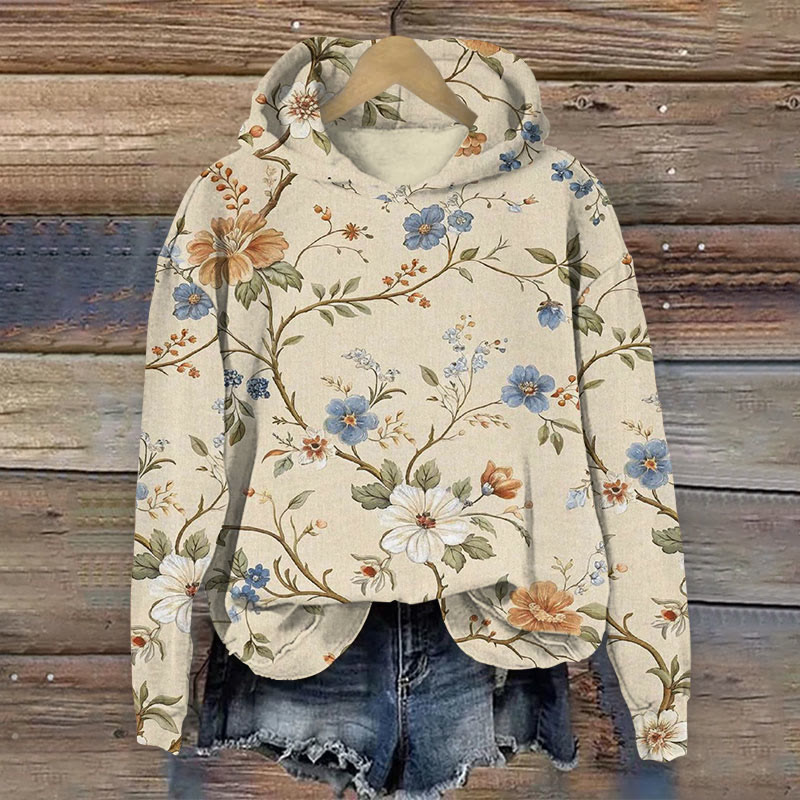 Vintage Floral Art Print Long Sleeve Hoodie
