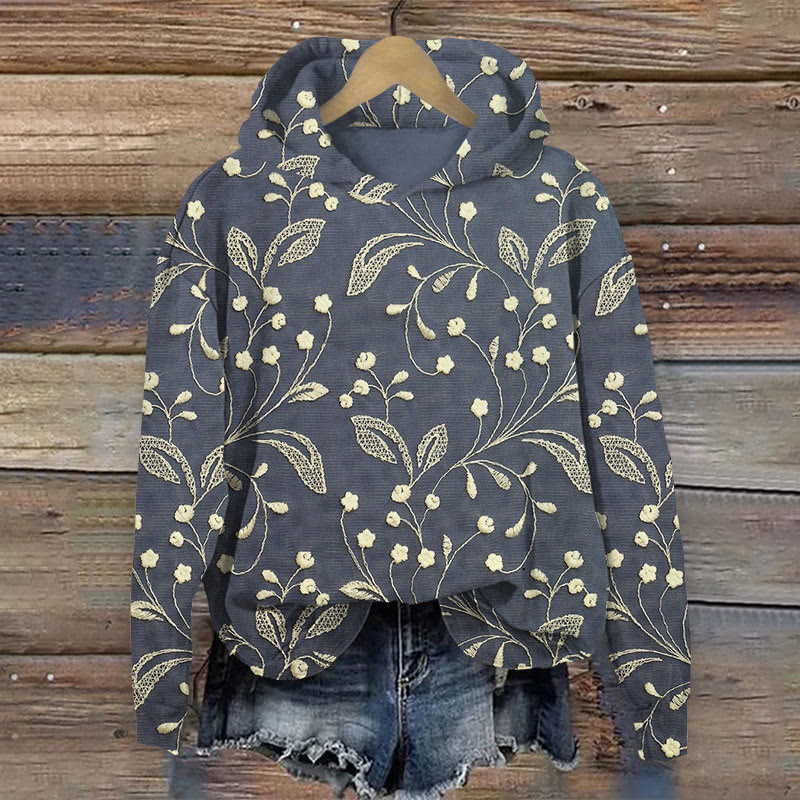 Vintage White Floral Print Long Sleeve Hoodie
