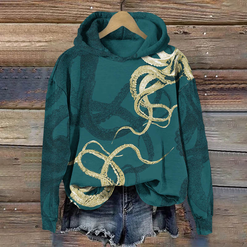 Creative Oil Painting Octopus Tentacles Art Print Long Sleeve Hoodie