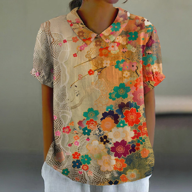 Retro Art Floral Print Casual Lapel Loose Blouse