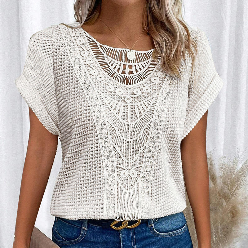 Women's Lace Splicing Crew Neck Casual Short Sleeve Top