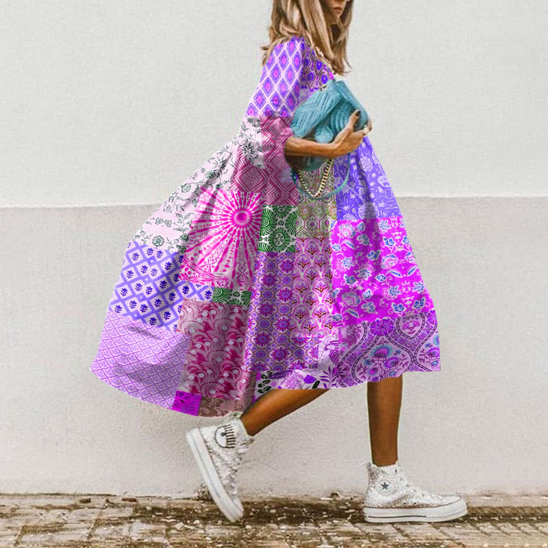 Bohemian Resort Floral Art Print Casual Loose Dress