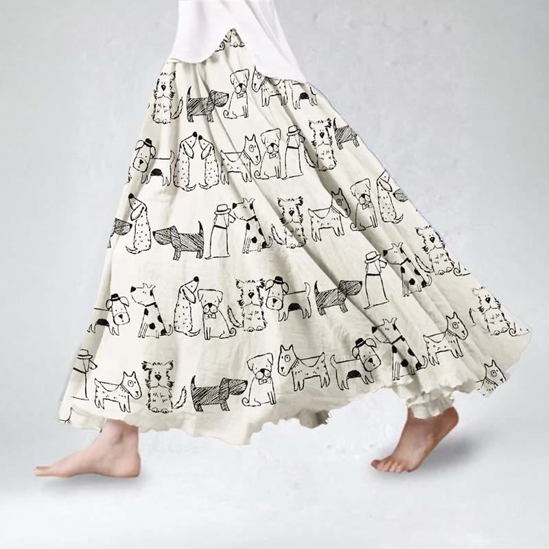 Women's Cute Dog Art Print Linen Pocket Skirt