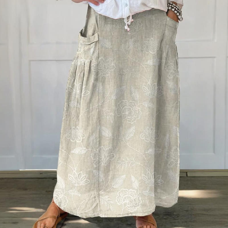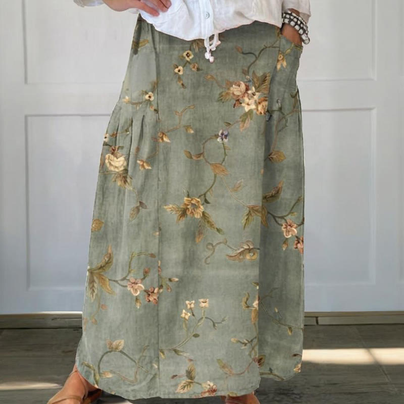 Vintage Floral Pattern Women's Linen Pocket Skirt