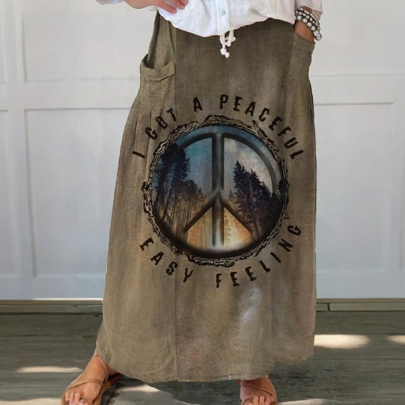 Women's Vintage Love And Peace Flower Art Print Pocket Skirt
