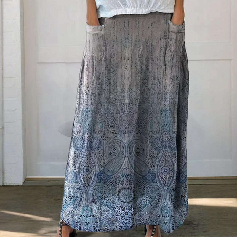 Women's Retro Elegant Ethnic Art Pattern Print Linen Pocket Skirt