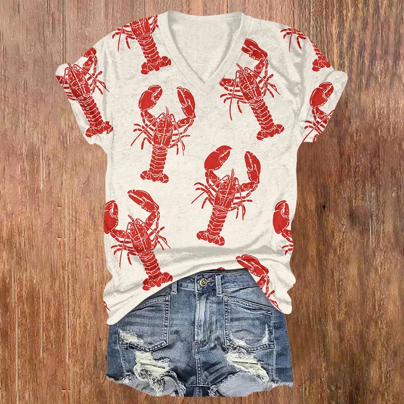 Vintage Watercolor Red Lobster print v-neck T-Shirt