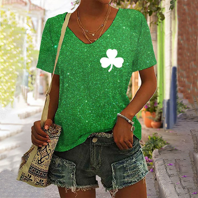 Ladies St. Patrick's Day Four Leaf Clover Print T-shirt
