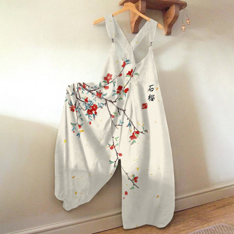 Women's Japanese Art Floral Vintage Print Jumpsuit