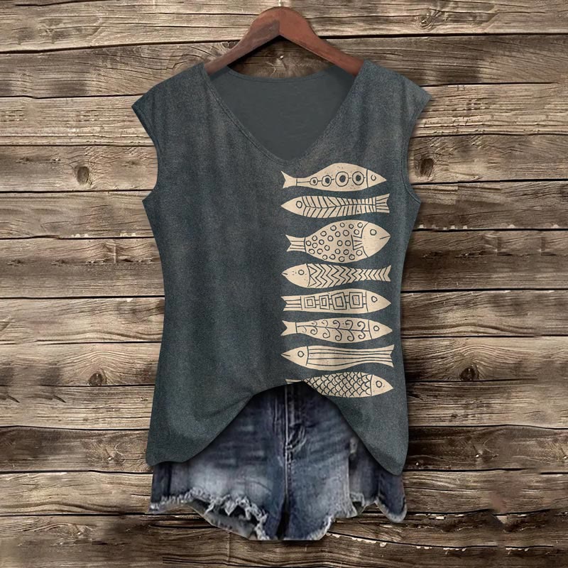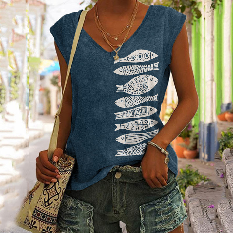 Women's Japanese Art Plum Blossom Print Women's Casual V-neck Tank Top