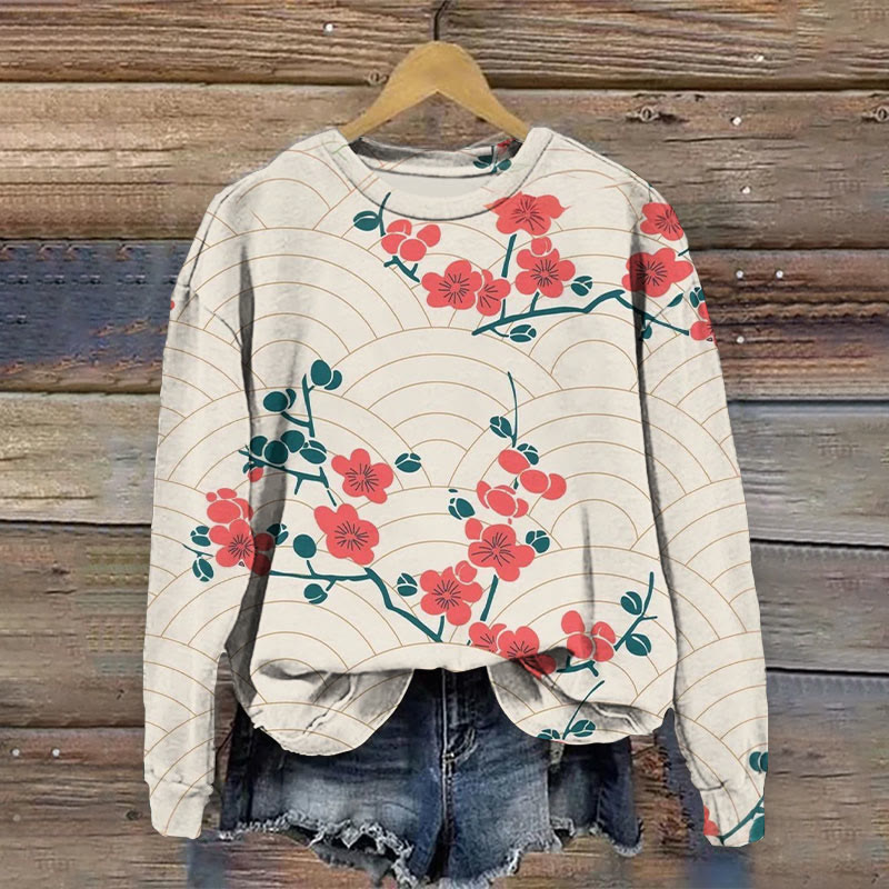 Women's Japanese Wave And Plum Blossom Print Sweatshirt