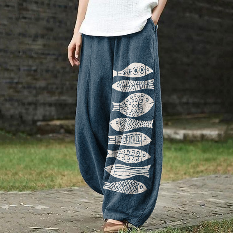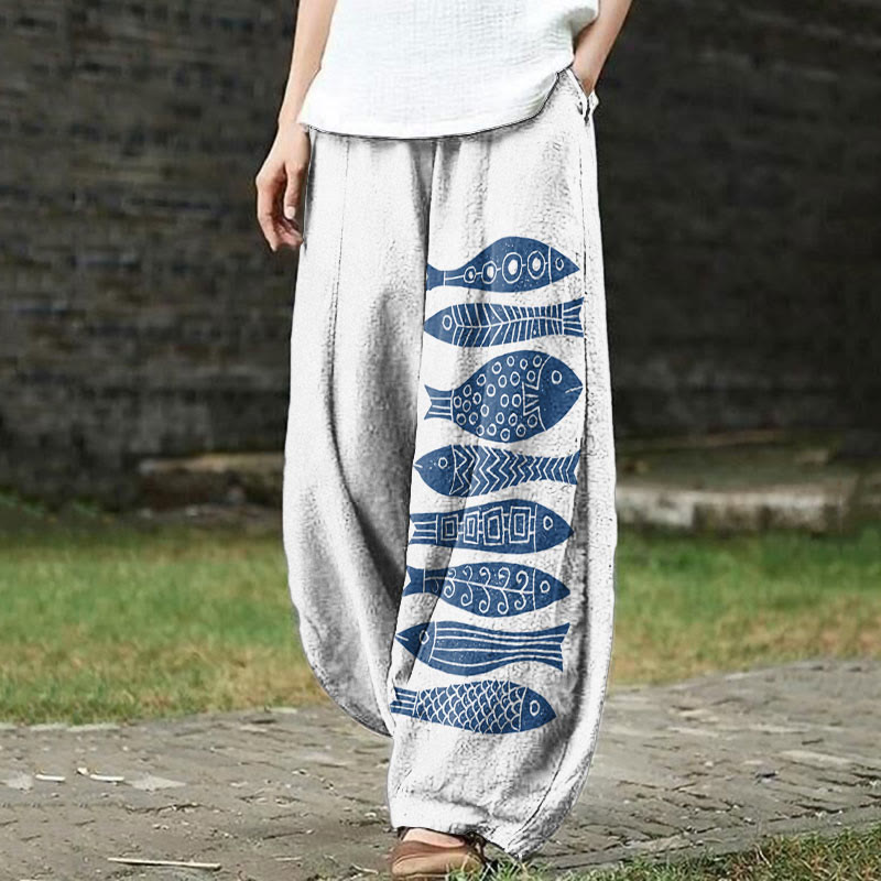 Women's Japanese Art Plum Blossom Print Casual Pants