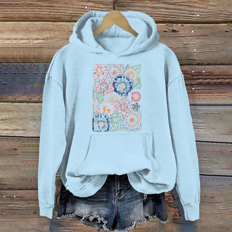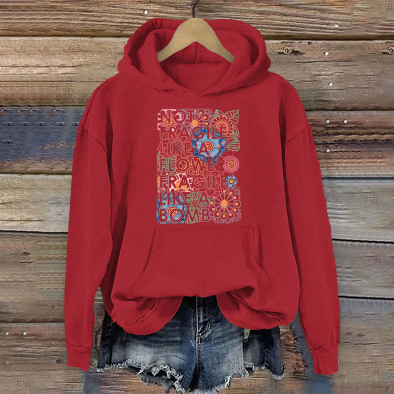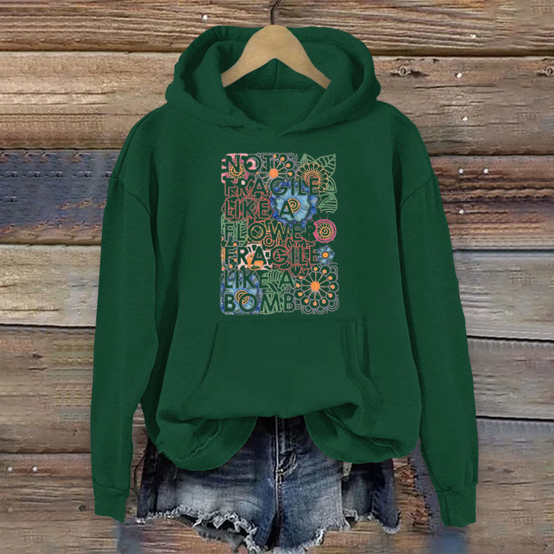 100% Cotton Hippie Not Fragile Like A Flower Fragile Like A Bomb Print Women's Hoodie