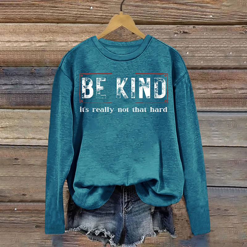 Be Kind Print Casual Crew Neck Long Sleeve Sweatshirt