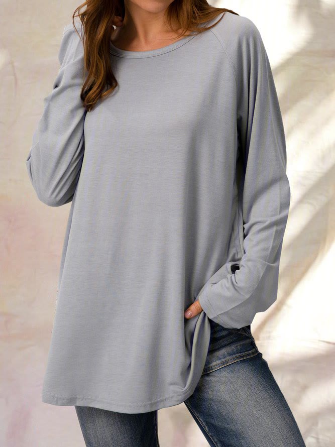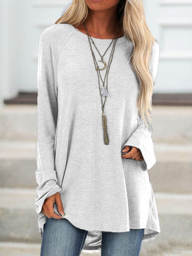 Casufit Women's Plus Size Solid Color Round Neck Long Sleeve Casual Tunic Top