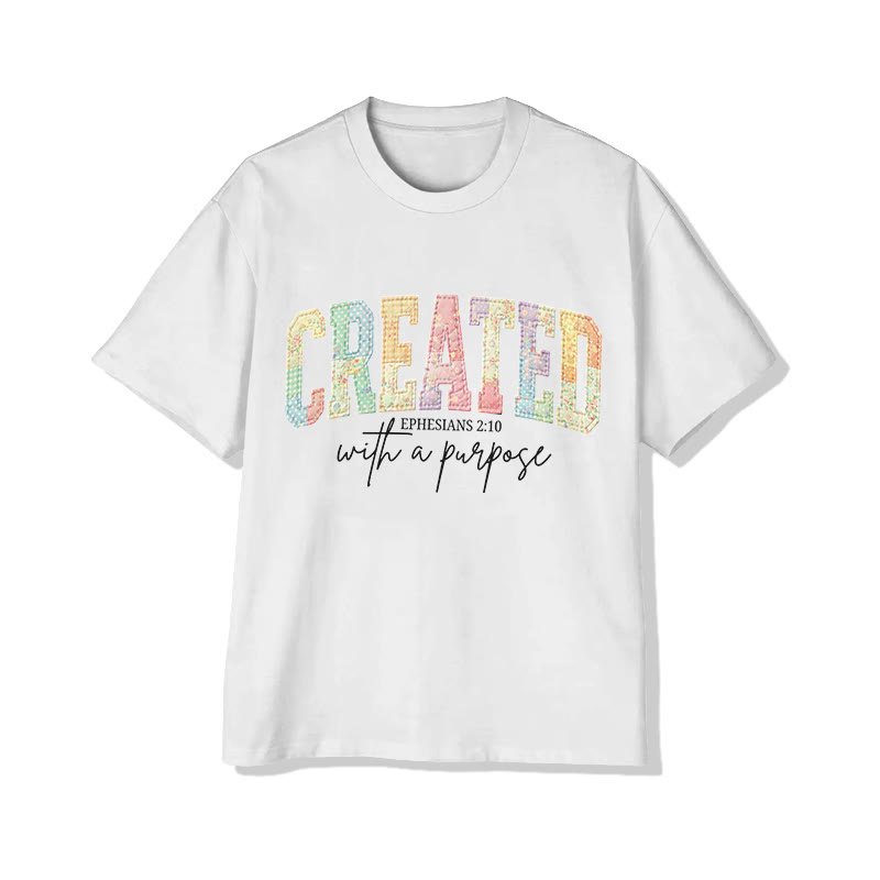 Christian Created With A Purpose Ephesians 2:10 Print Pattern Cotton Print T-Shirt