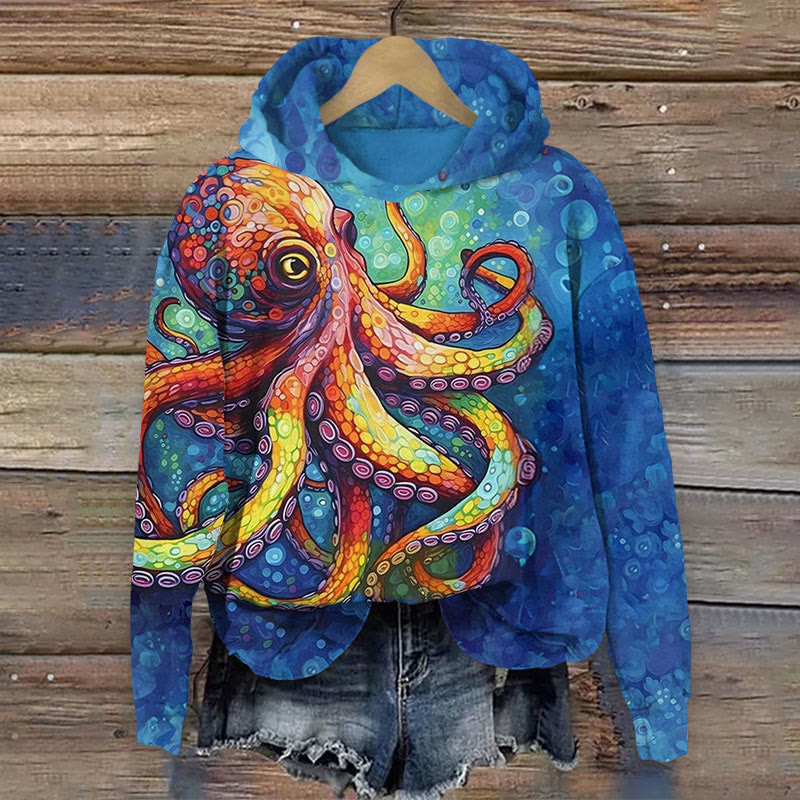 Colorful Art Octopus Wiith Bubbles Print Long Sleeve Hoodie