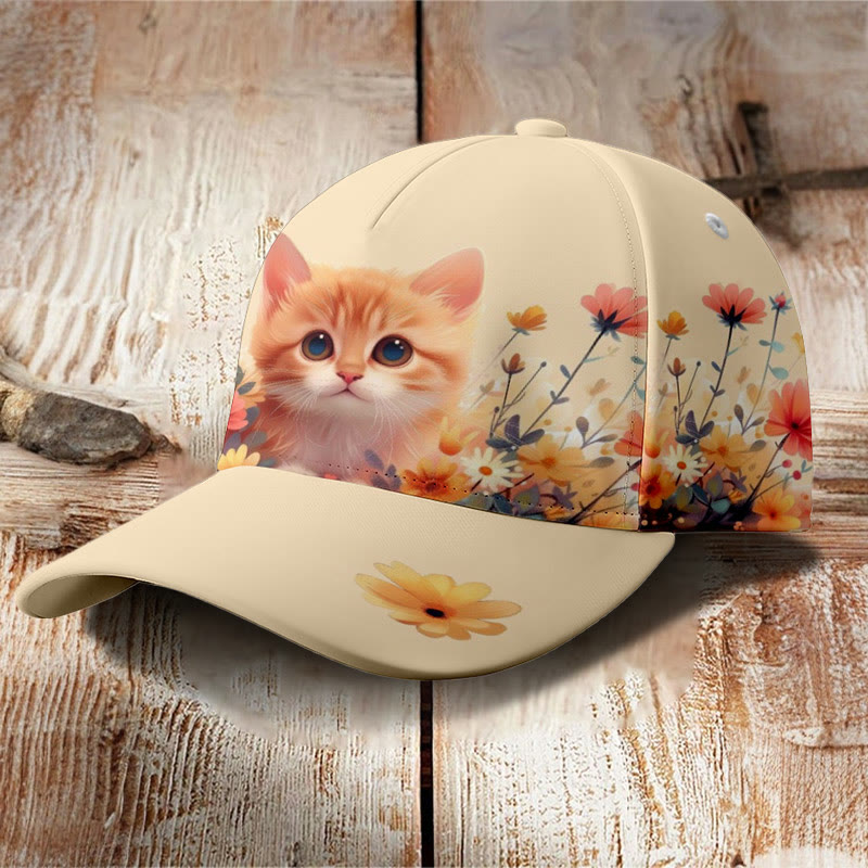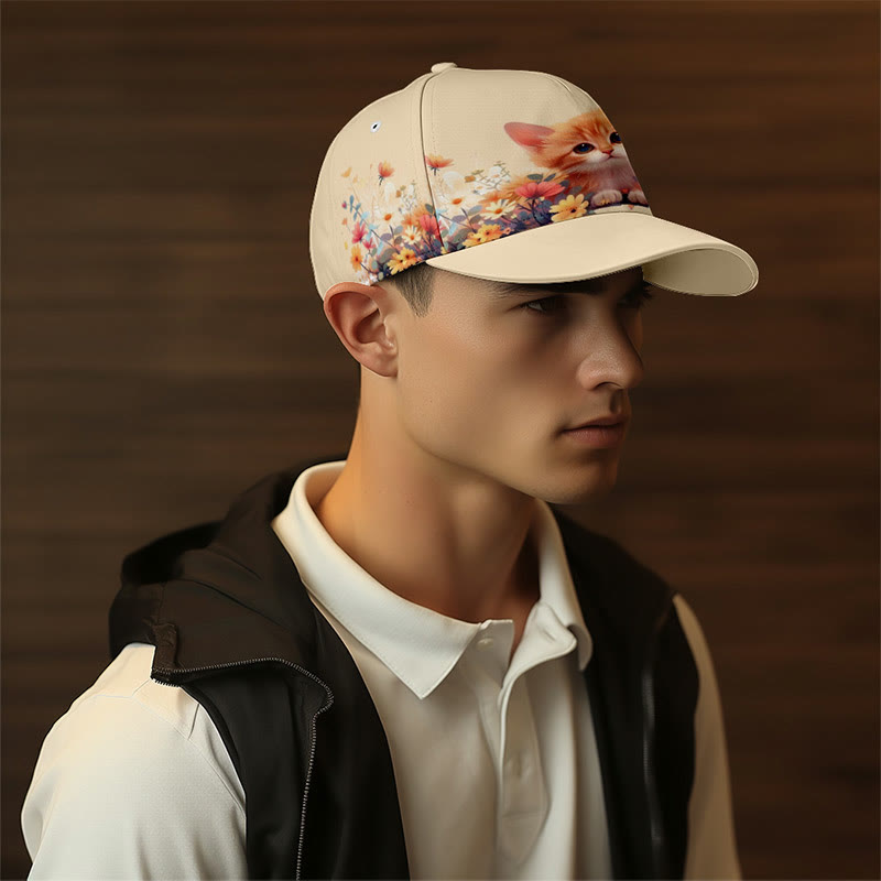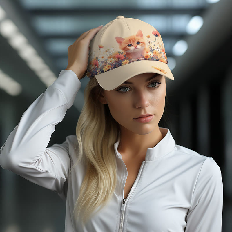 Cute Cat Floral Print Cap