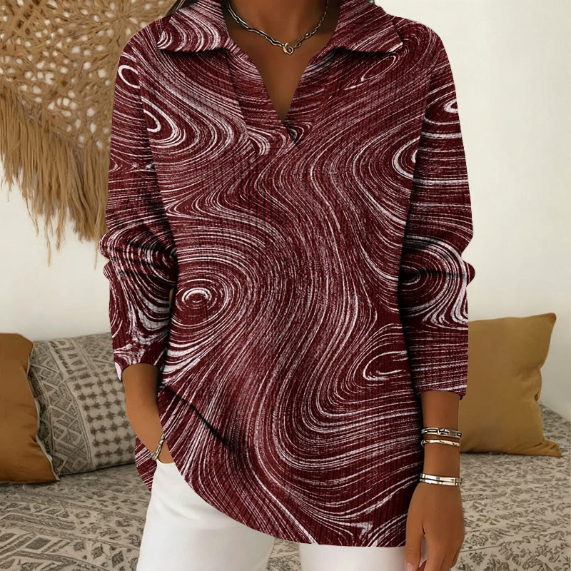 Gradient Water Ripple Art Pattern Polo Collar Long Sleeve Sweater
