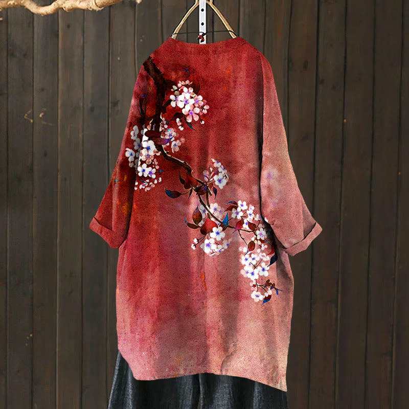 Japanese Antique Pear Blossom Ink Painting Print Cardigan