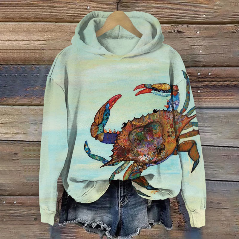 Painted Crab Art Print Long Sleeve Hoodie