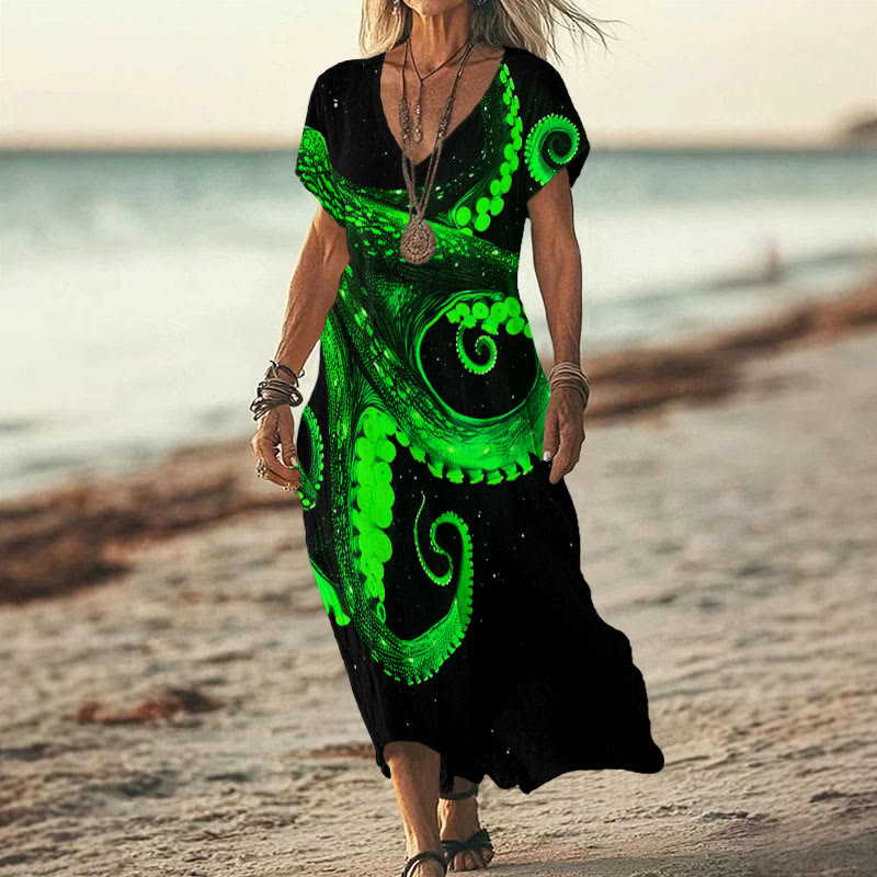 Three-dimensional Creative Octopus Art Print V-neck Dress
