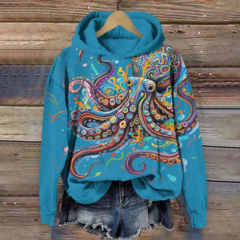 Vintage Rainbow Octopus Art Print Long Sleeve Hoodie