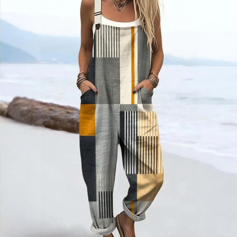 Women's Abstract Geometric Pattern Art Print Casual Wide Leg Jumpsuit