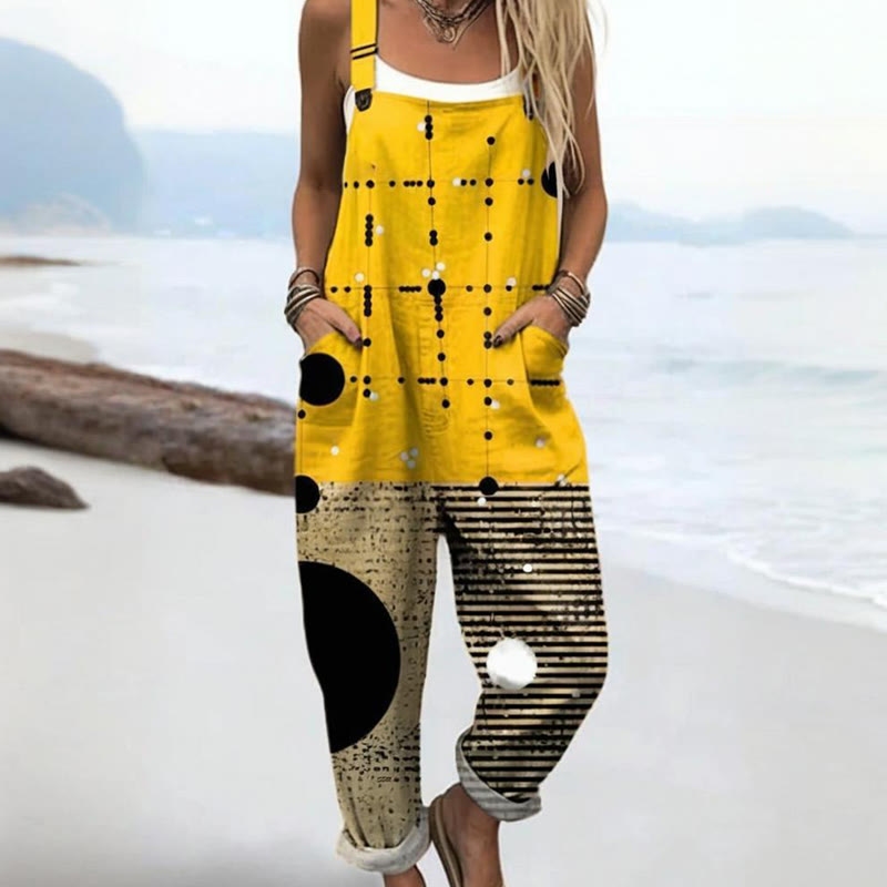 Women's Geometric Pattern Art Print Casual Wide Leg Jumpsuit