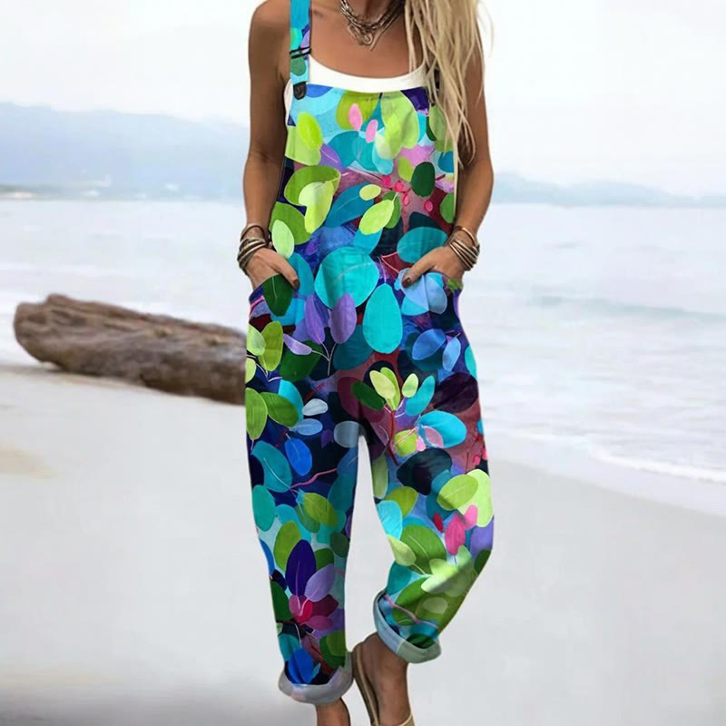 Women's Lovely Floral Art Print Casual Wide Leg Jumpsuit