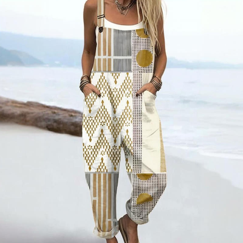 Women's Vintage Abstract Geometric Art Print Casual Wide Leg Jumpsuit