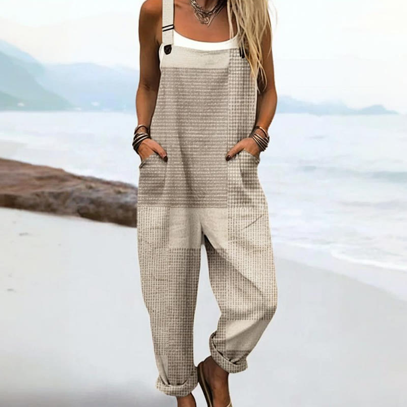 Women's Vintage Abstract Geometric Line Art Print Casual Wide Leg Jumpsuit