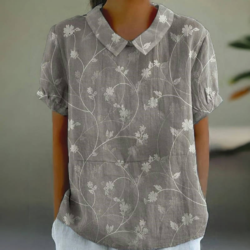 Women's Vintage Floral Art Print Casual Cotton And Linen Shirt