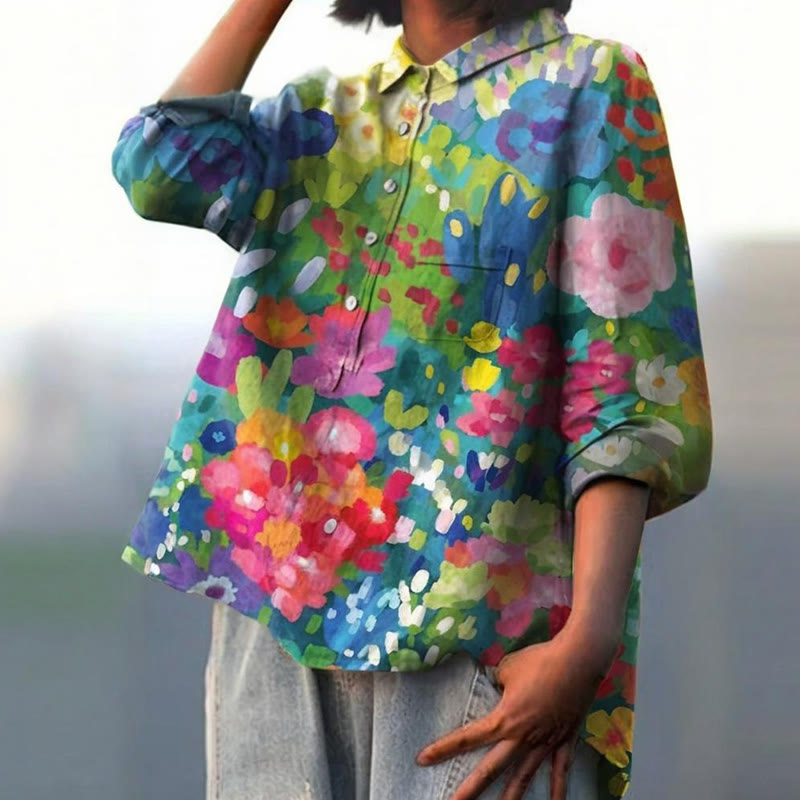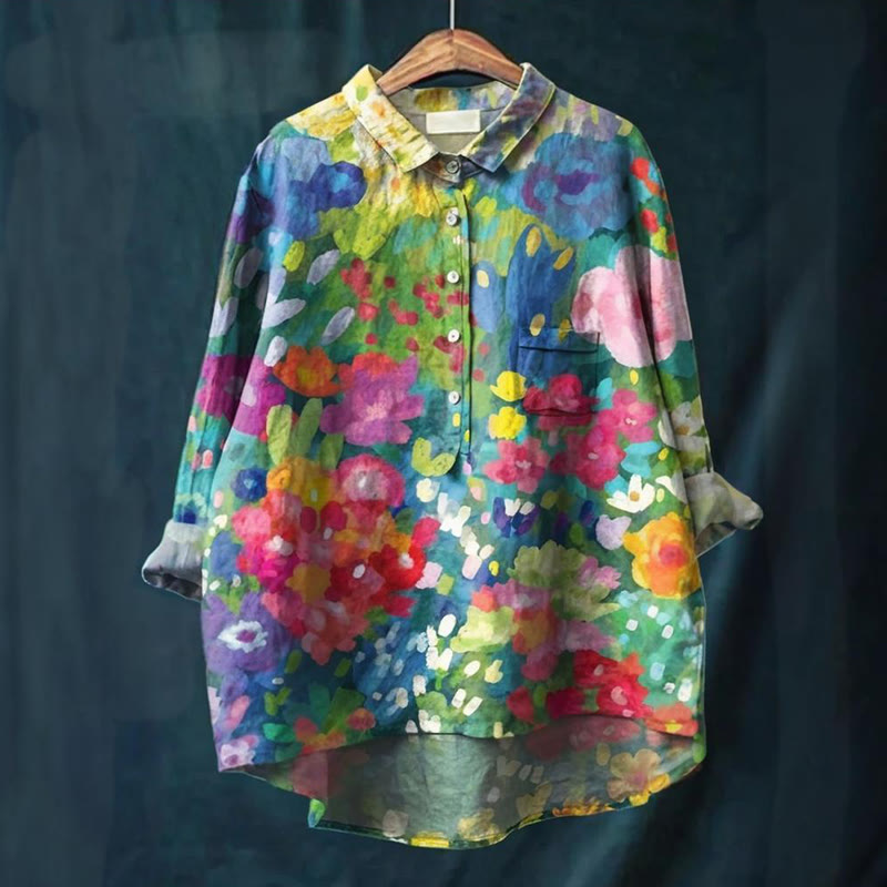 Women's Vintage Lovely Floral Art Print Casual Cotton And Linen Shirt