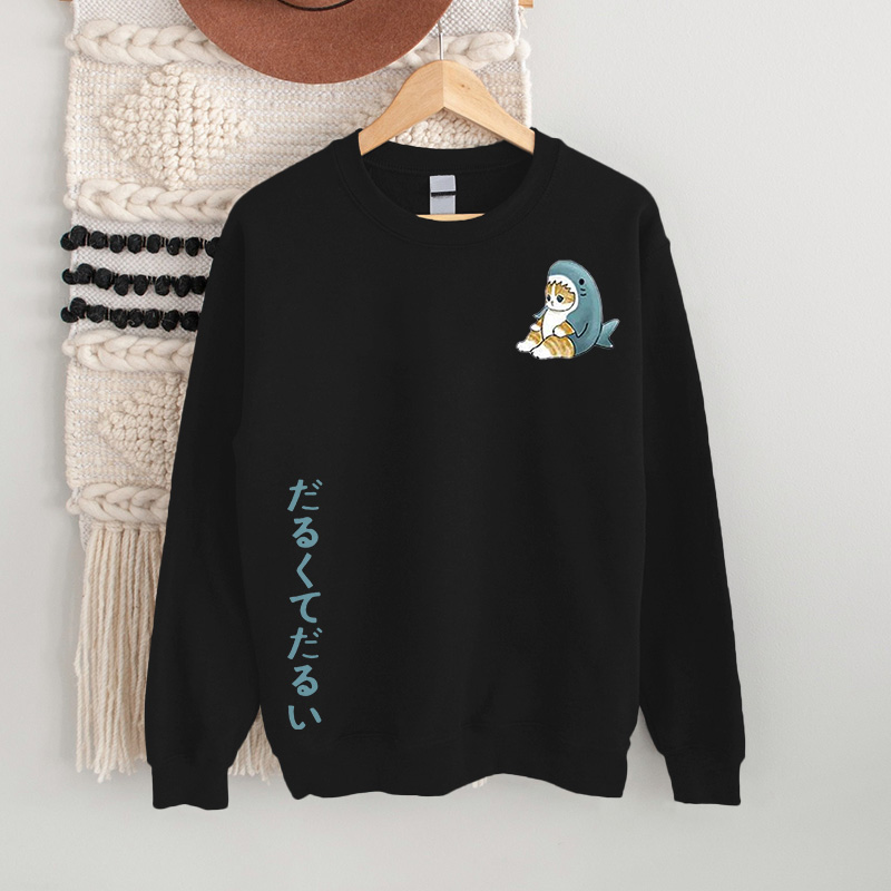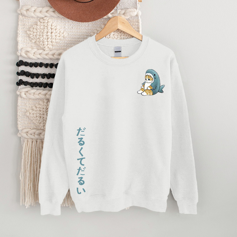 100% Cotton Japanese Casual Cute Cat Print Sweatshirt