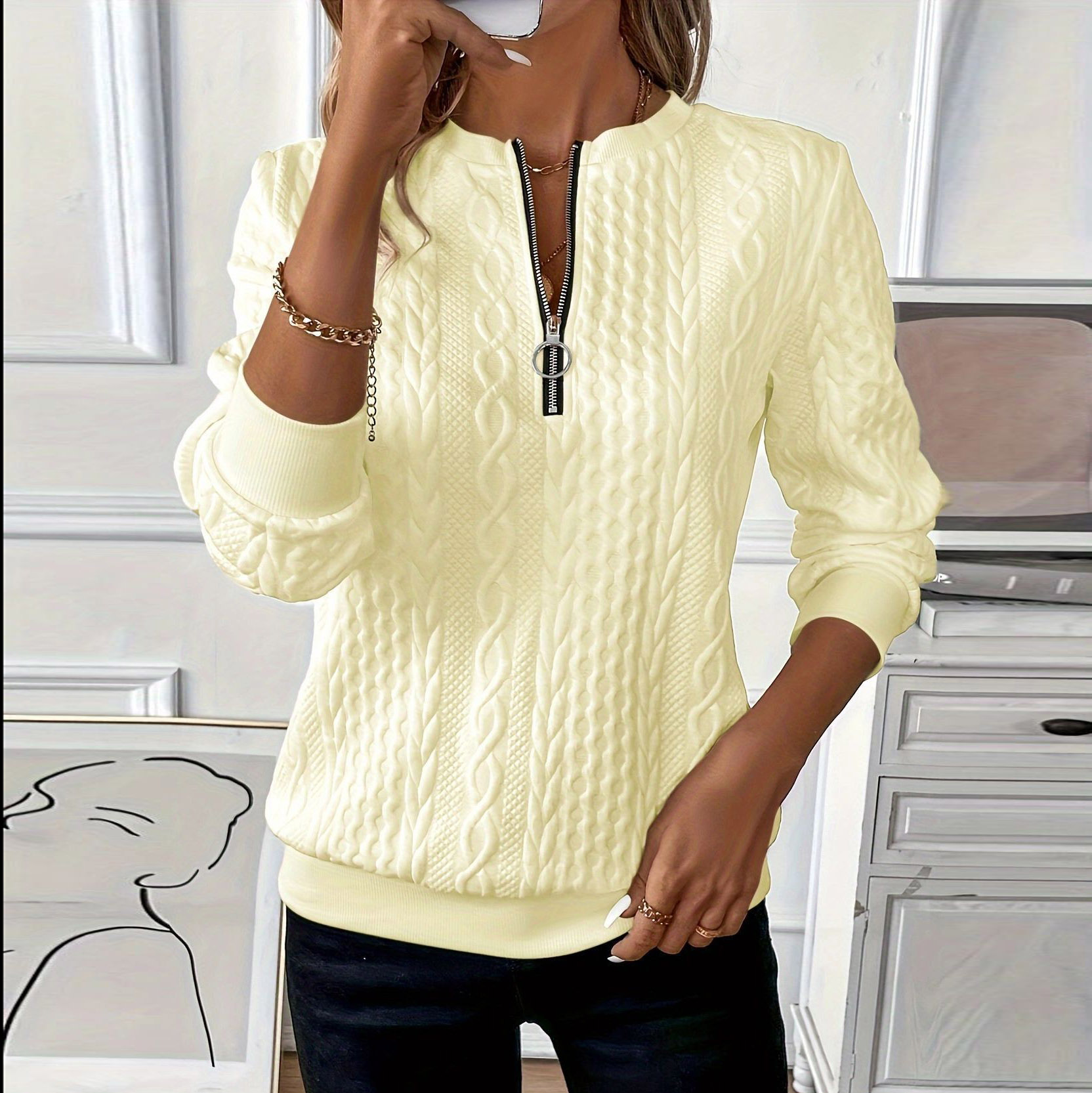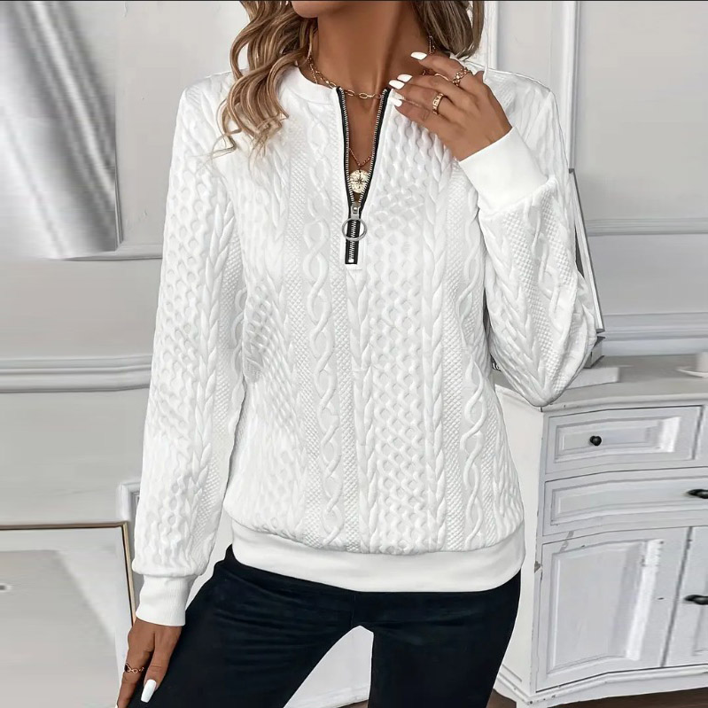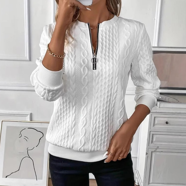 Jacquard Zipper Long Sleeve Casual Pullover Sweatshirt